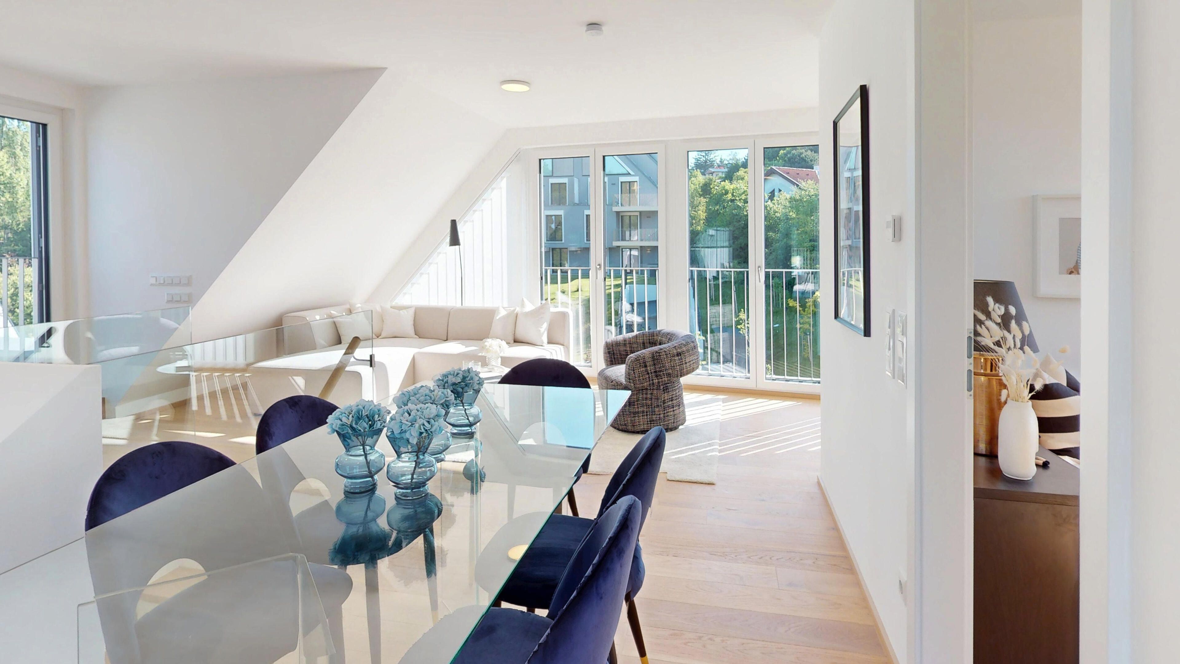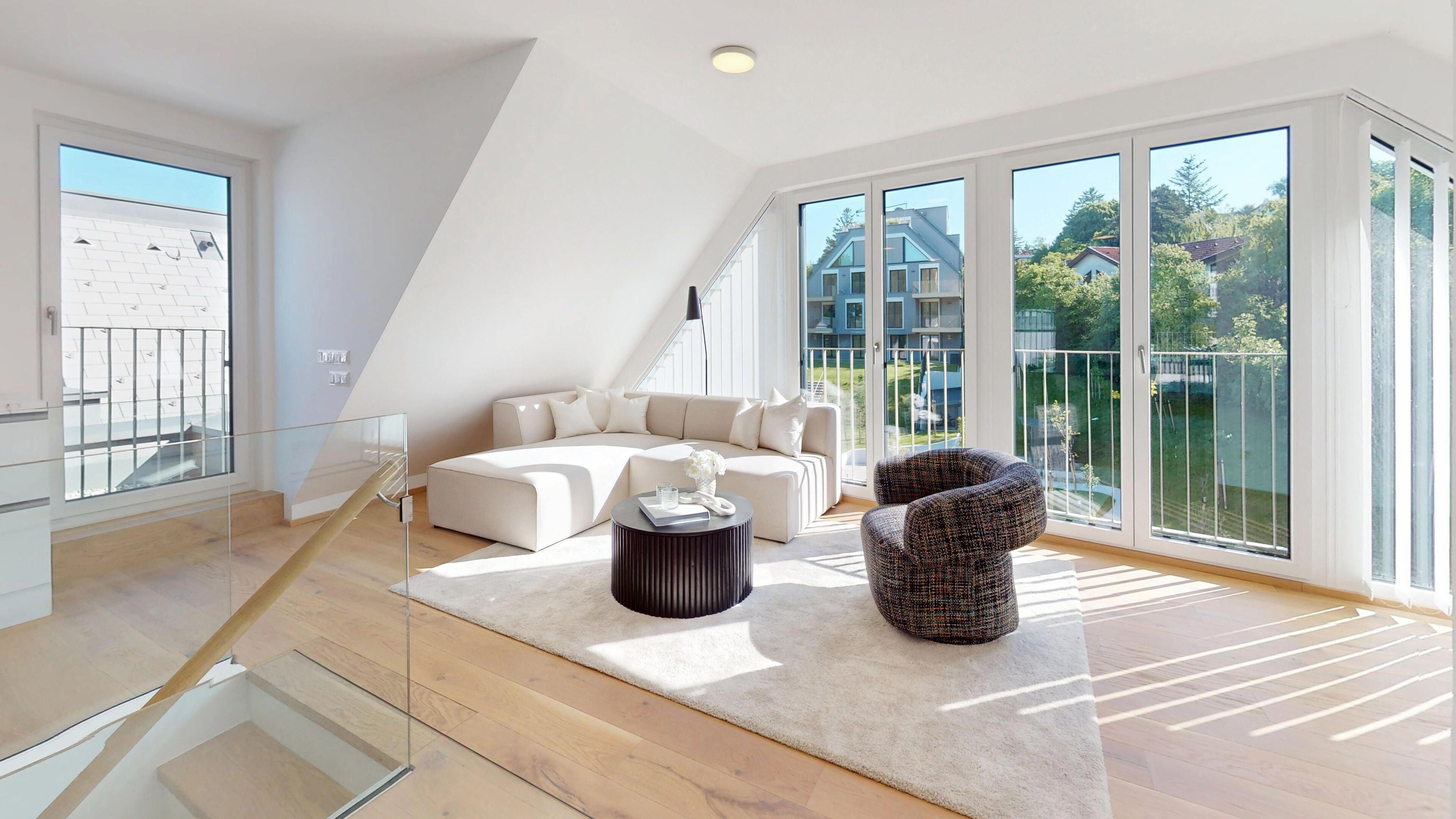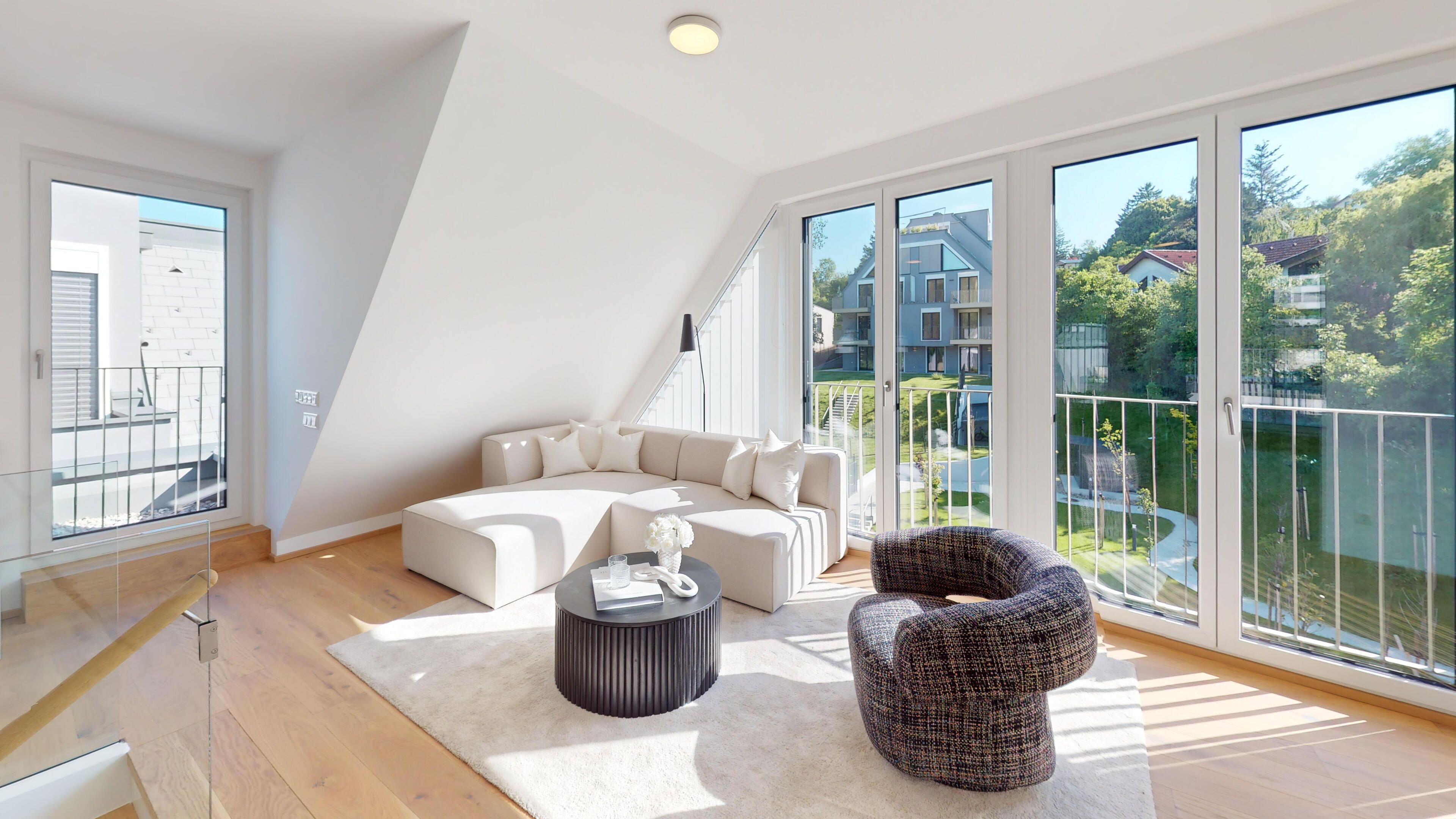 1190 Vienna, Krottenbachstraße 182 I Quality living in the beauty of Neustift. I modern freehold flats from approx. 45 to approx. 155 m² | upscale furnishings | each flat with open space | in-house underground car park | home delivery space | visuals: © JamJam | living.simply.done. | www.raiffeisen-wohnbau.at